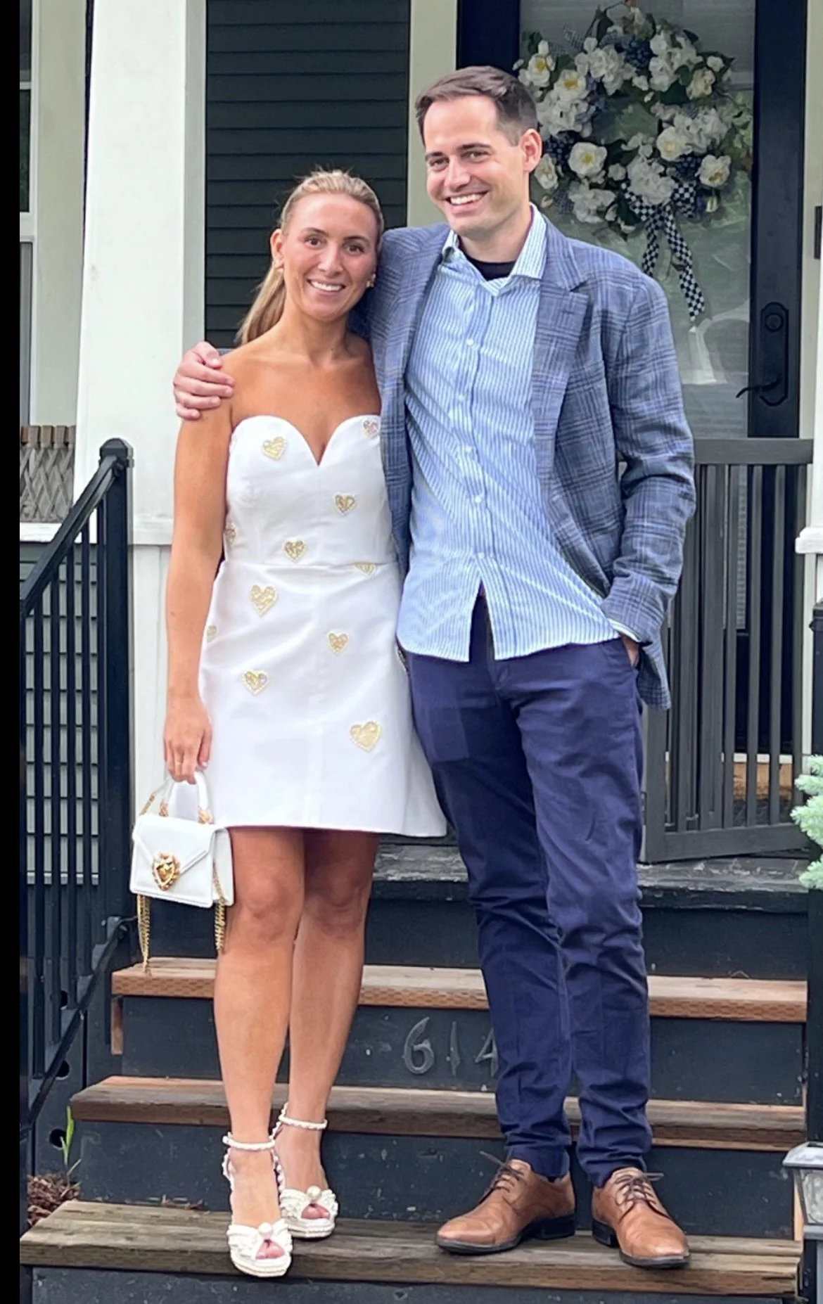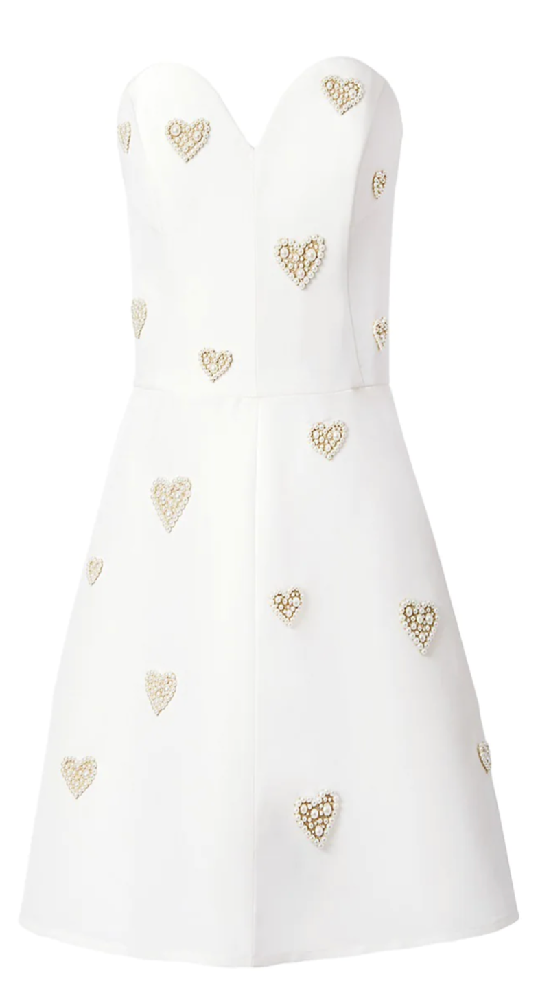The Jimmy Choo pearl shoes were a splurge. We just couldn’t resist! The Dior pearl earrings she’s had for a while, and the same Dolce heart bag finished the look. It even has teeny tiny pearls around the heart! There was a coordinating Jimmy Choo pearl handbag that tempted us, but we just couldn’t bring ourselves to do it.