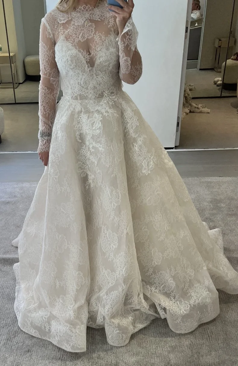 We started at Bergdorf Goodman. There was a beautiful Carolina Herrera I liked, called Paulette, but some of the sizes are so far off, it’s too hard to get an idea of how it will actually fit. I figured we would see it at our Carolina Herrera appointment. I still think it’s pretty!