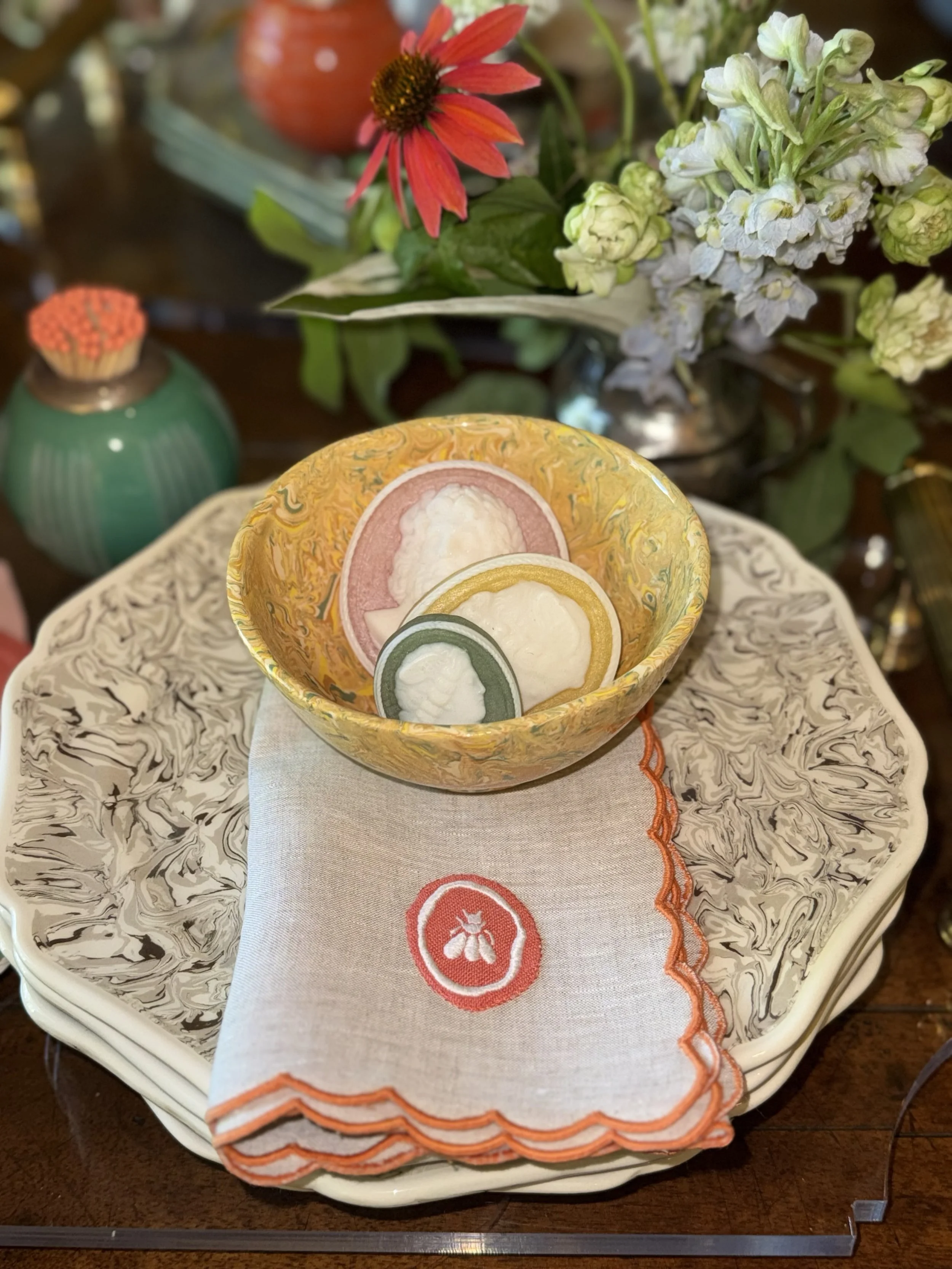 Finally had a little photo shoot to highlight the new Intaglio | Cameo Dinner and Cocktail Napkins! I call them intaglios, and Lily at Elizabeth Lake calls them cameos… Either way, I’m very obsessed with them!