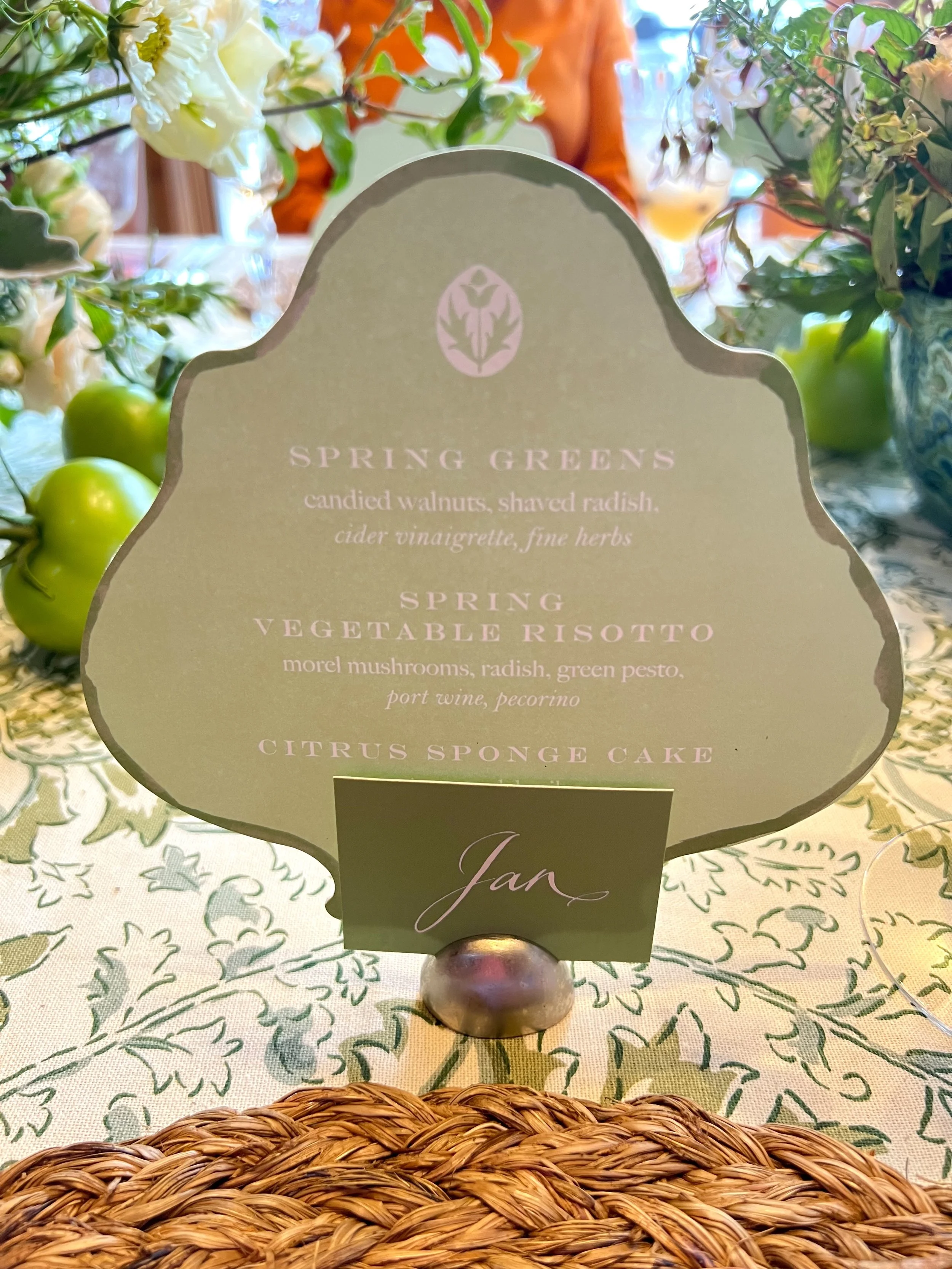 The menus and place cards were so charming and the prettiest green.
