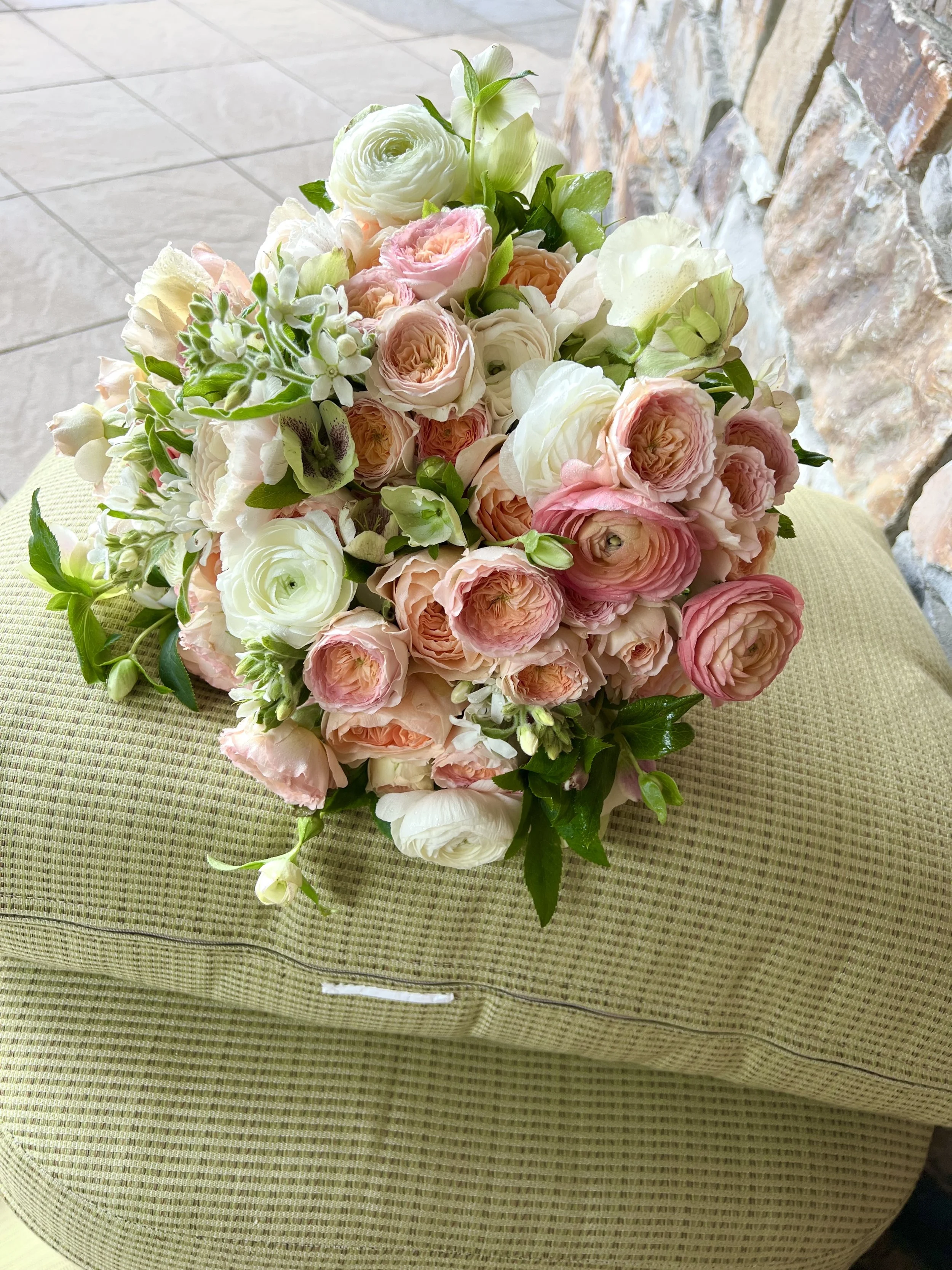 My dear friend Kyle Robino was set to do Hillary’s bridal bouquet, which was so thoughtful, and quite an undertaking to bring flowers from Omaha, assemble in Whitefish, and get to the venue. But she did it. I have to say, it is the most beautiful bouquet I’ve ever seen. I have literally hundreds of inspiration photos of bridal bouquets in a folder, and I’m not even sure what it is I like about some of them. Mostly, I think I am drawn to color, so an all-white bridal bouquet was out. (Hillary did not have an opinion) Kyle asked me a million questions about size, color, shape, flower preferences, etc. She is a genius for translating my answers into the most beautiful and perfect bouquet!