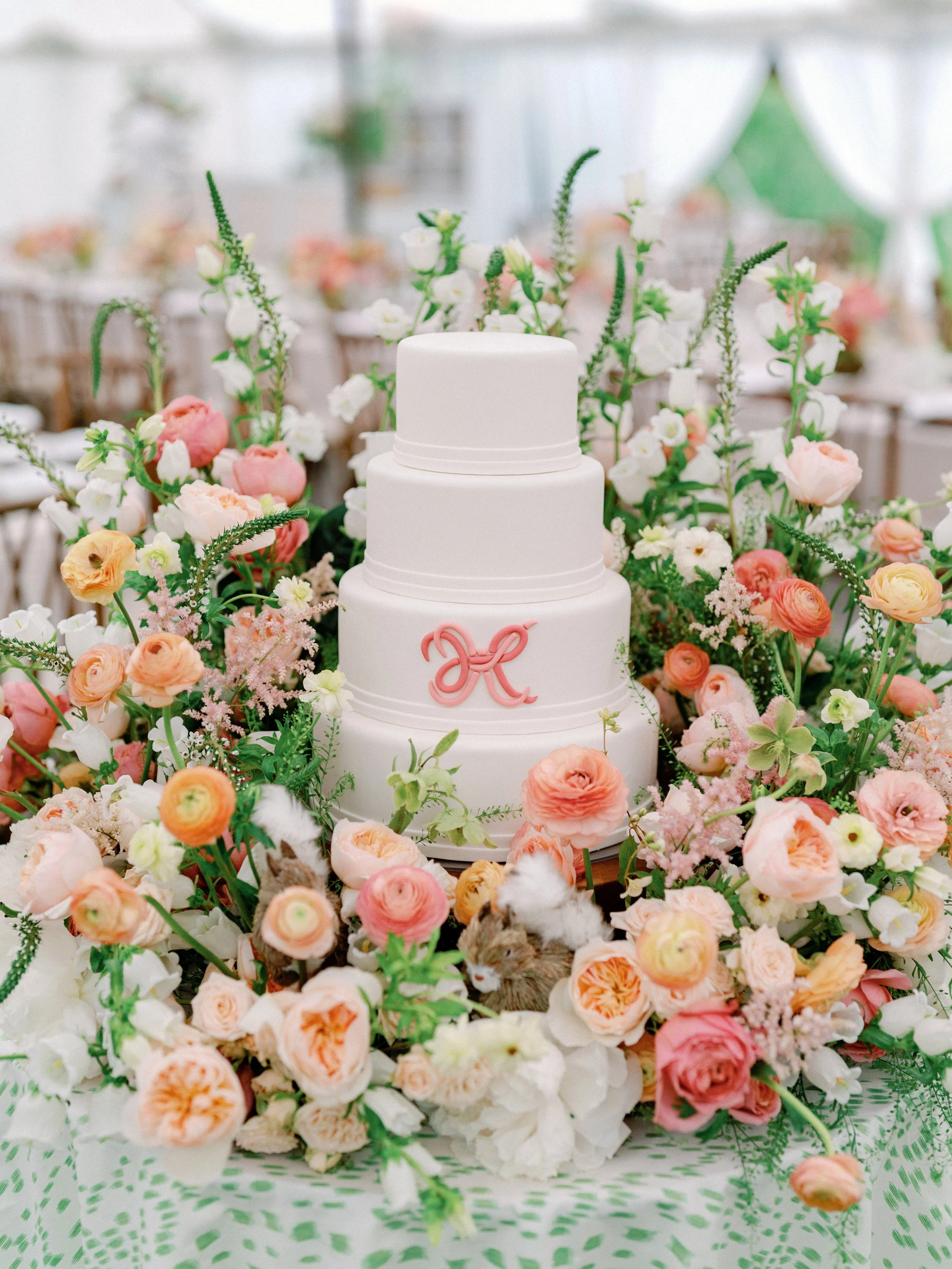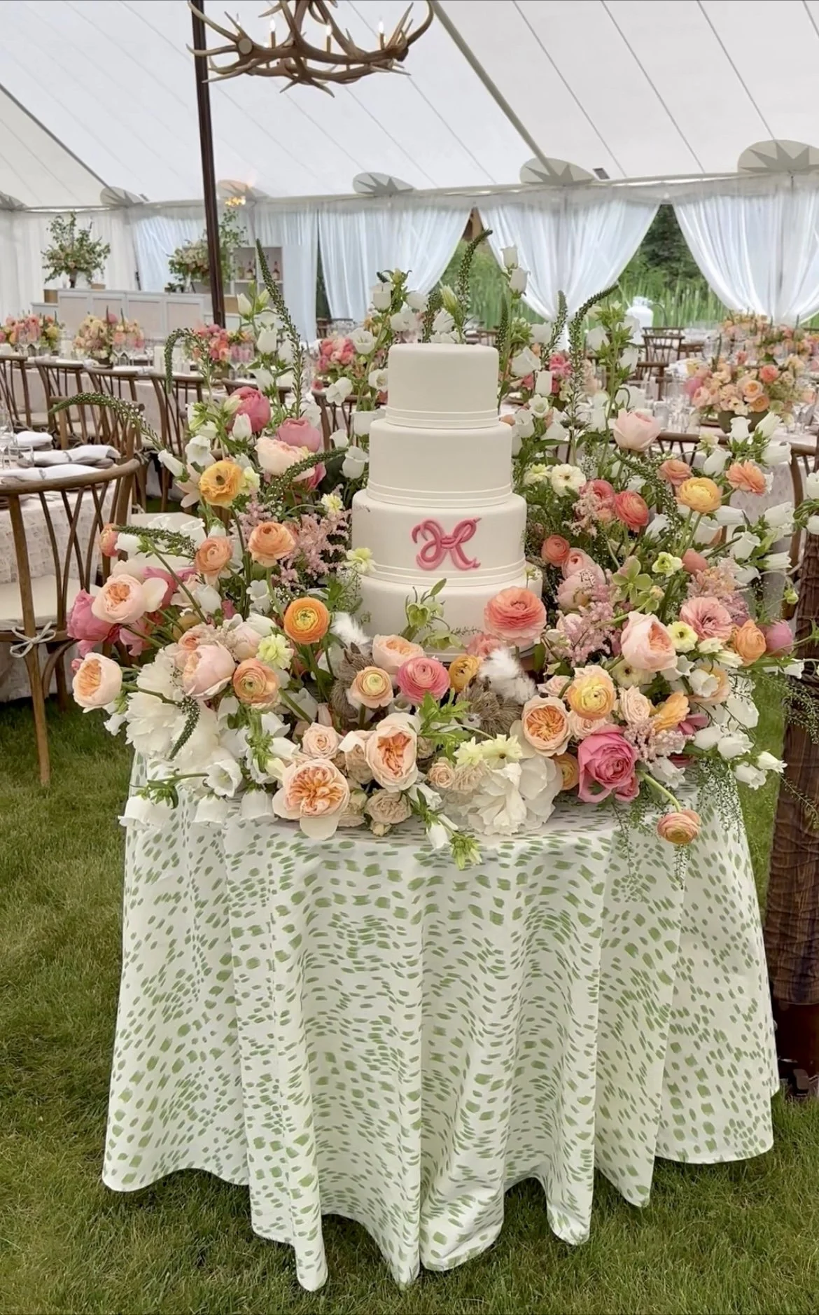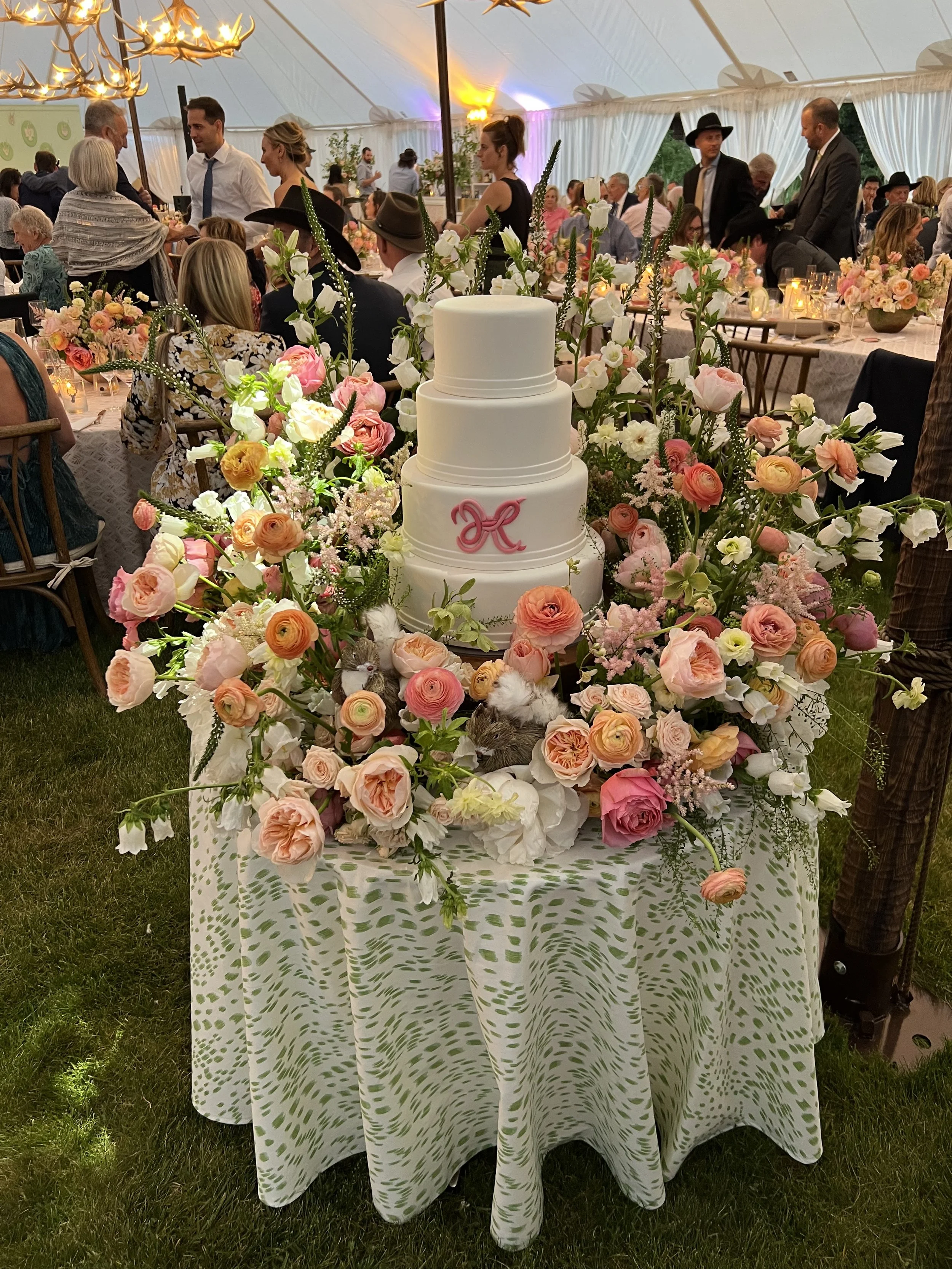 The cake table got a floral upgrade a couple months before the wedding. I was emailing Darci questions and she finally sent me a new inspiration photo asking if that was what I was envisioning, and the answer was yes, yes it was. It was so spectacular and I really wanted the cake table, right at the entrance of the tent, to be a wow moment.