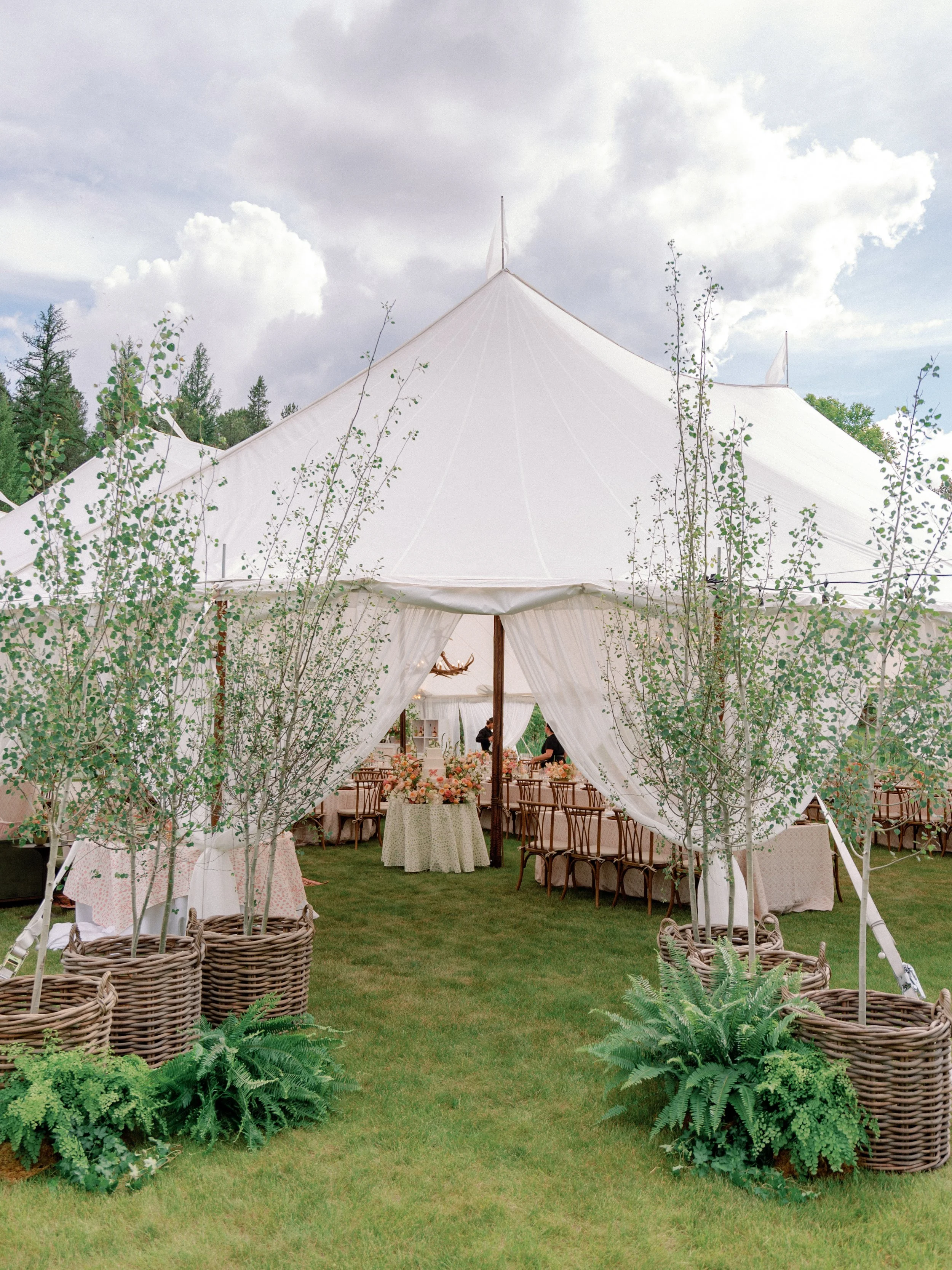 At the entrance of the tent, we did trees in baskets with ferns, ivy, and maidenhair ferns. Again, loved the greenery here minus the flowers.
