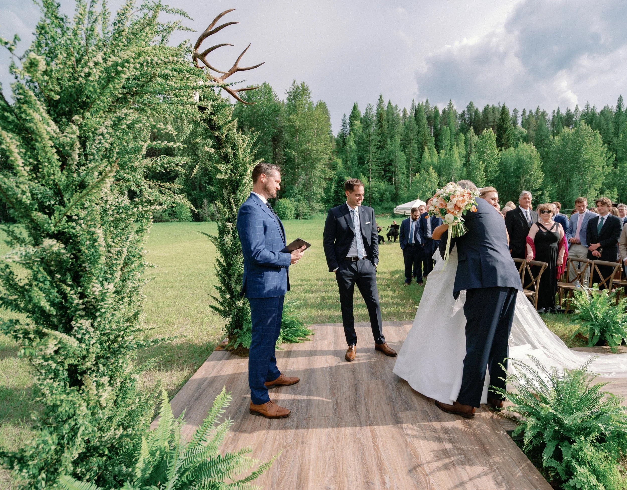 As far as wedding planning, I was a little nervous about the flowers. They are a favorite part of any party, but especially a wedding, and with Pinterest and the Kardashians, expectations have really gotten out of control. I mean I love a massive floral arch and a floral ceiling as much as the next person, but also, I feel like this was an opportunity to practice restraint. Especially in Montana, for an outdoor wedding. This did not need to be a Kardashian baby shower situation.