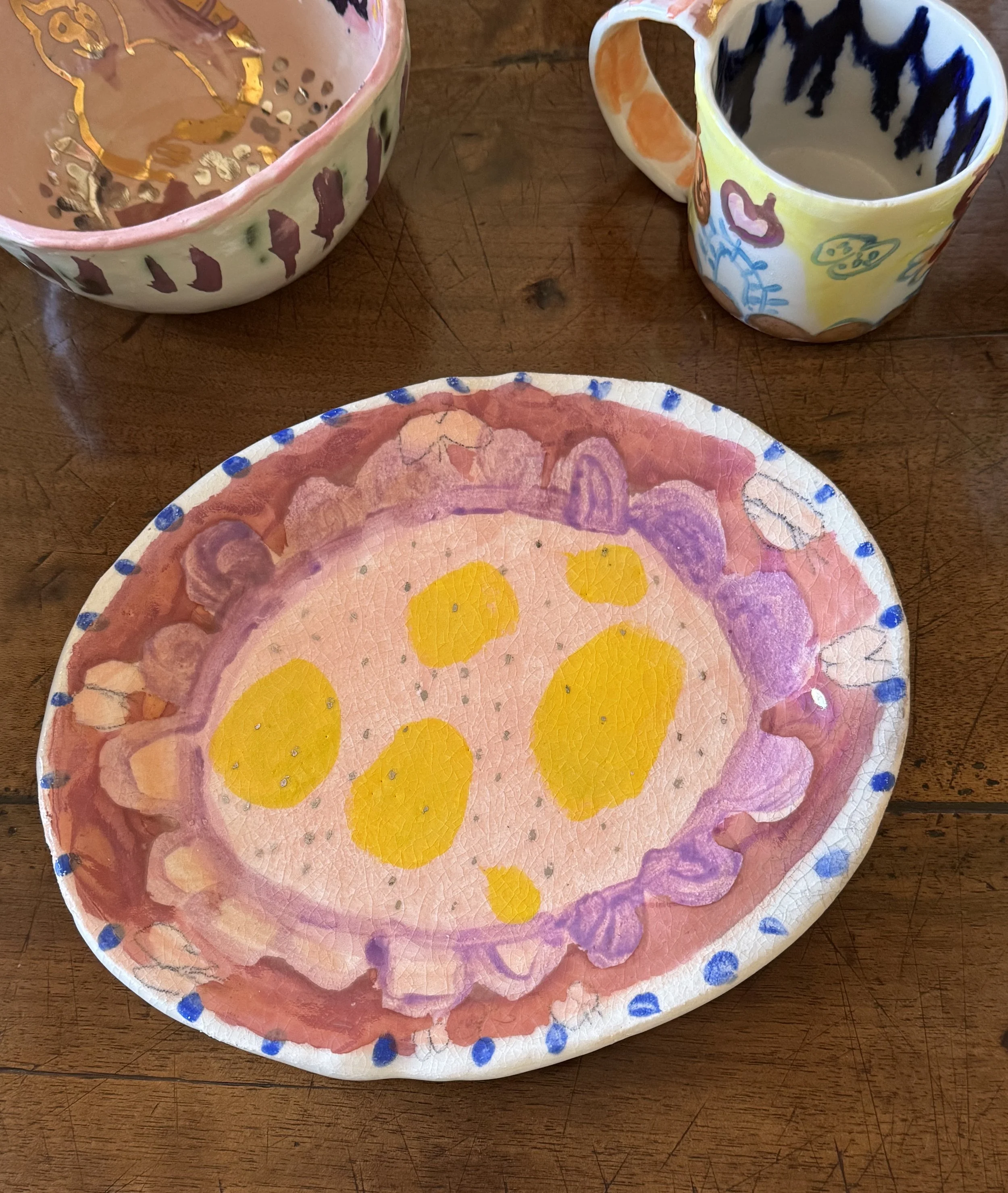 Next up is Louise Kaye, a painter and ceramicist from the UK. Although I am equally obsessed with her paintings, her charming ceramics are what I am currently featuring in the shop - playful and primitive. I’m especially in love with these avocado bowls.