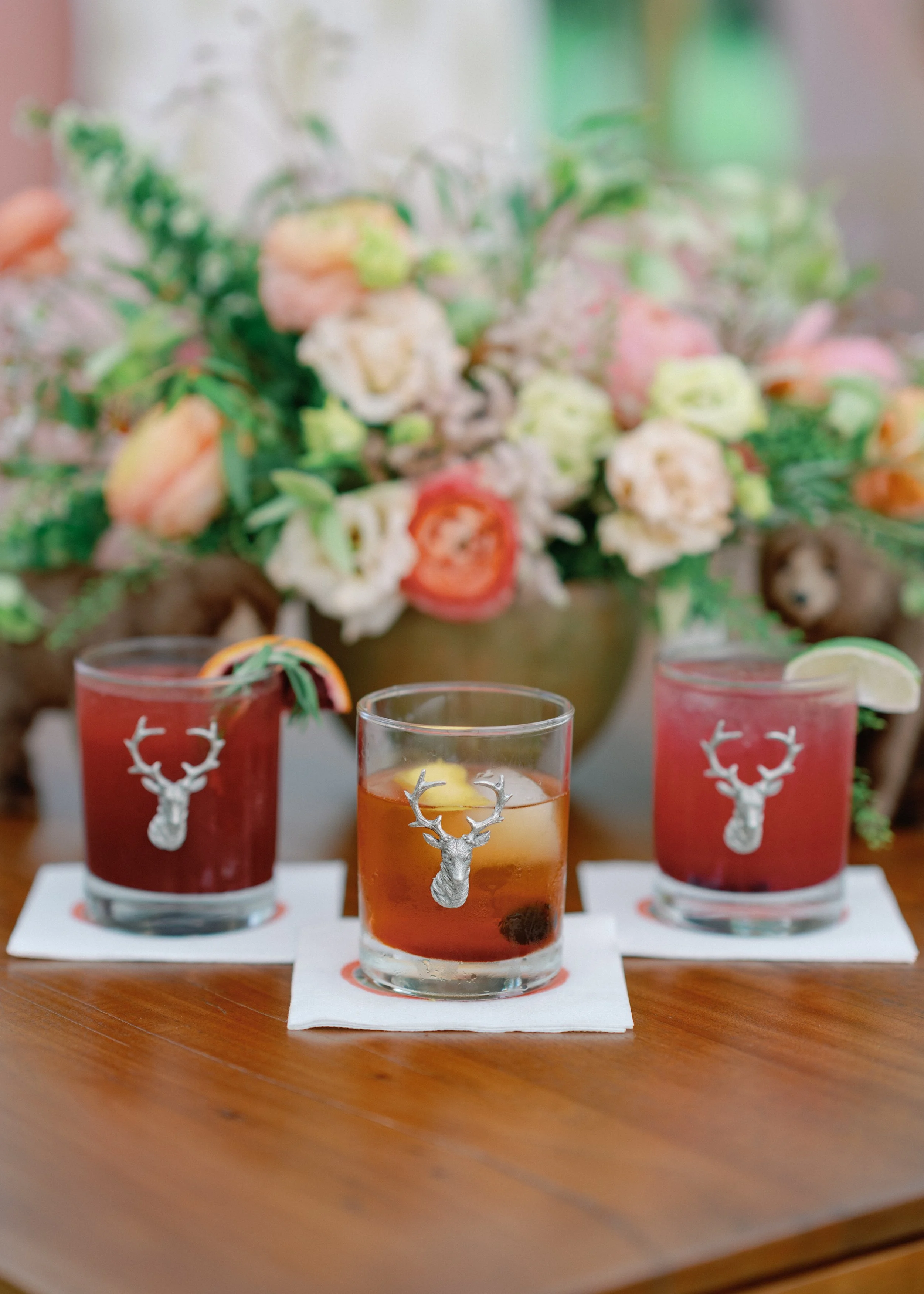A few favorite details: the gorgeous pewter flatware, the Happy Menocal menu/place card, the antler napkin ring, the stag glasses, and a closer look at the oval table numbers.
