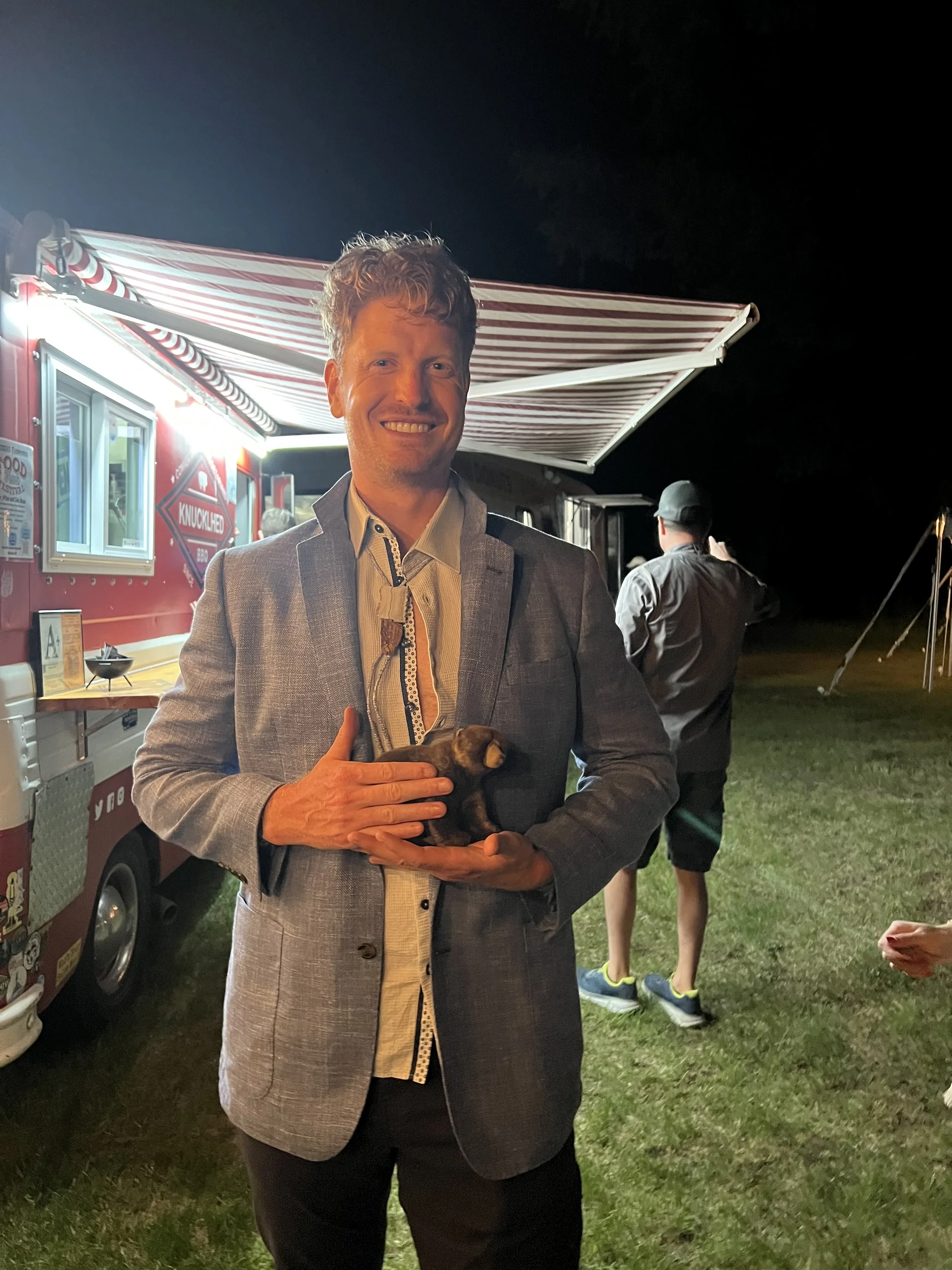 Here’s Whitey with a stolen bear at the BBQ truck!